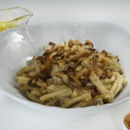 Cazarecce pasta with mushrooms and truffle oil