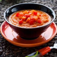 In a blender, puree half of the celery, onions, zucchini, bell pepper, garlic, carrot juice, and celery juice.