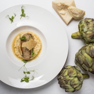 Celery Root Risotto with Duck Foie Gras and Broth