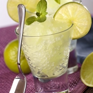 Fluff the granita with a fork, spoon into dessert cups, and garnish with lime wedges.