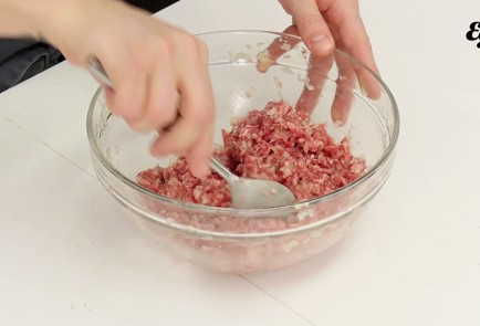 Add the minced meat to the onion, along with a bit of water, and season with salt and pepper. The mixture should be slightly runny.