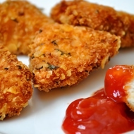 Place the nuggets in a preheated skillet with sunflower oil and fry thoroughly. Remove from the skillet and place on a paper towel to absorb excess fat. You can also fry the nuggets in a deep fryer. Just be sure to remove excess fat with a paper towel.