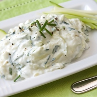 In a bowl, gently mix the ricotta and buttermilk until smooth. Then add the dill, green onions, and horseradish, and mix well. Season with salt and pepper.