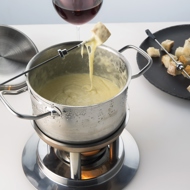 Rub the sides and bottom of the fondue pot with a clove of garlic.