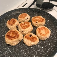 Place the pancakes on a preheated skillet (no need to coat them in anything). Fry for 3–5 minutes on each side.