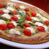 Bake for about 20 minutes until cooked and golden brown. Cut into 8 segments and sprinkle with thinly sliced basil leaves.