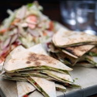 Cut with a pizza cutter and serve with guacamole or taco sauce.
