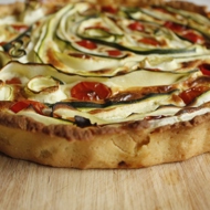 Cheese Quiche with Cherry Tomatoes and Zucchini Petals