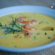 Cheese Soup with Shrimp and Herbs
