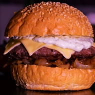 Cheeseburger with Caramelized Onions, Balsamic Vinegar, and Tartar Sauce