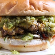 Mix the ground meat, 1 tablespoon of ground chili pepper, cumin, salt, and pepper. Form 4 patties slightly larger than the buns. Refrigerate. In a small bowl, mix the remaining ground chili pepper, mayonnaise, ketchup, sautéed garlic cloves, green peppers, salt, and pepper.
