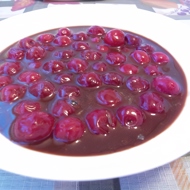 Make the chocolate sauce from orange juice, melted honey, and carob powder.