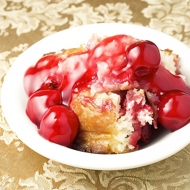 Spoon the dough onto the cherry mixture. If using one large baking dish, arrange the dough into 4 symmetrical mounds of equal size.
