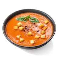The secret to the success of this soup lies in the truly summery, sweet, and ripe tomatoes and cherries that you won't hesitate to add to your soup bowl during the season. The soup takes on a color that is not a fiery red but a much more interesting wine-burgundy (if you use dark tomatoes like heirloom varieties) or a vibrant orange (with pink tomatoes), and the flavor unfolds delicately in a spiral — from vegetable and herbal notes to sweet fruity undertones.