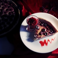 When serving, the cherry sauce looks great, which is made from the remaining 100 grams of berries and juice, as you might have guessed. Place the last ingredients into a blender, sprinkle with 50 grams of sugar, and chop, but not too finely. Pour the mixture into a small saucepan and simmer over medium heat until it thickens. Optionally, you can add some grated cocoa, grated chocolate, or 1-2 tablespoons of your favorite flavored liqueur to this sauce.