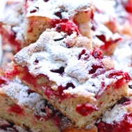 Preheat the oven to 392°F. Spread the dough over the cherries and bake for half an hour until golden.