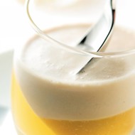 Remove the zest from the grapefruits and squeeze out the juice. Blanch the zest: boil it for 10 seconds and remove it from the water. Repeat this process twice, changing the water each time. Then, place the zest in a bowl of cold water. Let it drain. Mix the zest with fine sugar and the squeezed juice, and simmer on low heat for 30 minutes. Blend with a mixer. Allow to cool and pour over the jelly in cups. Place in the refrigerator while you prepare the smoothie.