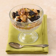 Top the cream with the fig and prunes mixed with nuts and serve cold.