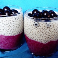 Distribute the berries into serving glasses. After 3 hours (the chia pudding can be considered ready), layer the berry mixture on top, cover the glasses with plastic wrap to prevent drying out, and place them in the refrigerator for 4 hours, or overnight.