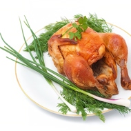 Preheat the oven to 356°F and place the chicken inside. The cooking time for the chicken is calculated as follows: for every 0.5 kg, count 20 minutes plus an additional 30 minutes. The chicken is ready when the juices that run out when pierced with a toothpick are clear.