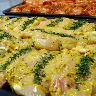 Prepare the sour cream sauce: pour sour cream into a container, add a little water, a crushed bouillon cube, and a bit of flour (to thicken the sauce), and stir well.