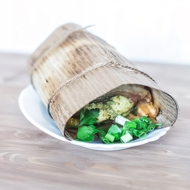 Fold the grill paper around the food and tie the roll with two wet pieces of twine. If the edges do not close, use an additional sheet on top. Place the roll on a preheated pan or baking dish, adding about 1 cm of water to the bottom.