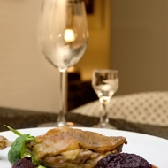 Heat the white wine and reduce it by half. Season with salt and pepper. Drizzle the finished chicken breasts with the wine sauce.