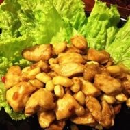 Cut the prepared chicken breast into small cubes, add a little soy sauce and diluted cornstarch, and mix thoroughly. Roast the peanuts and place them in a bowl.