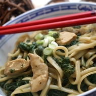 A wok can be used. Buckwheat noodles (soba) or rice noodles can also be used. Soy sauce can be added to taste.