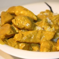 Sprinkle with turmeric and curry, pour in a can of coconut milk, squeeze the juice of a small lime (or half of a large one), and simmer over medium heat for about 40 minutes.