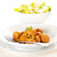 Chicken Cutlets in Wine Sauce with Mushrooms and Peas