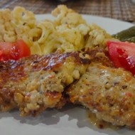 This recipe is simple and quick. Once the cutlets are cooked, there will be fat left in the pan, which is perfect for cooking the cauliflower. The spicy cutlets with cheese are balanced by slightly under-salted and a bit crispy cauliflower (do not cook it to mush, but rather leave it slightly firm, preparing it al dente). Serve with tomatoes and pickles, which will complement the dish. Enjoy your meal!