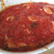 After 30 minutes of baking the chicken, spread the tomato mixture over the fillet and let it cook for another 15–20 minutes at the same temperature.