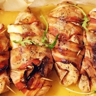Chicken fillet baked with tomatoes, bacon, and cheese