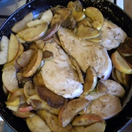 Remove the chicken from the skillet. In the remaining fat, sauté the apples for 5 minutes.