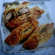 Season the chicken breasts with salt and pepper, coat with herbs, place in the center of the rounds, and wrap tightly.