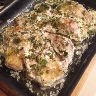 Pour 1/4 of the sour cream into the bottom of the dish, place half of the chicken pieces, season with salt and pepper, top with half of the lemon slices, and pour another 1/4 of the sour cream over it. Place the second half of the chicken on top, season again with salt and pepper, add the remaining lemon slices, pour the remaining sour cream, and place the remaining butter on top.