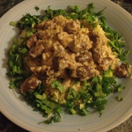 Pour in the cream and simmer for another 15 minutes. You can serve mashed potatoes as a side dish.
