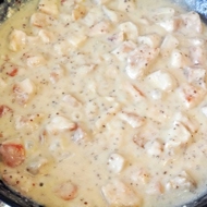 The finished chicken is best served with rice or mashed potatoes.