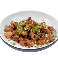 A classic Asian combination of ingredients. The red chicken meat readily absorbs the sweet soy sauce, delivering a powerful spicy flavor once it hits the skillet. Sesame seeds and green onions are traditional companions to chicken in soy sauce.