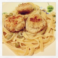 Chicken Meatballs with Pasta in Cream Sauce with Green Peas