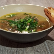 After 20 minutes of boiling, add the sautéed vegetables and one-fourth cup of well-washed wheat groats.