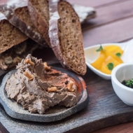 The pâté can be canned. To do this, pour it into sterilized jars, top with a layer of fat (bacon or salted melted butter), and seal. The fat helps the pâtés to be stored for a long time without any artificial preservatives.