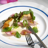 Chicken roll with pickled onions and grapes