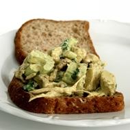 Preheat the grill or barbecue. Brush the chicken breasts with vegetable oil, lightly season with salt and pepper, and place them on the grill. Cook for a few minutes until done and golden brown. Cool and cut into small pieces.