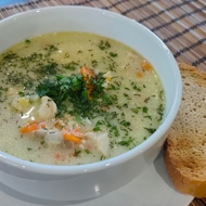 Stir everything, bring to a boil, and remove from heat: the soup is ready.