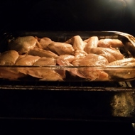 After that, take it out of the refrigerator and preheat the oven to 392°F. Meanwhile, grease a baking tray with oil and place the chicken on it. And of course, drizzle with the prepared sauce :)