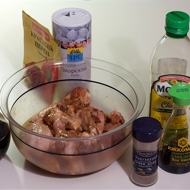 Chicken wings in a marinade of balsamic vinegar, soy sauce, and cayenne pepper