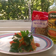At the end of cooking, add the cooked lentils, chopped tomatoes, and finely chopped parsley. Mix everything, simmer for the final five minutes, and it's ready to serve.