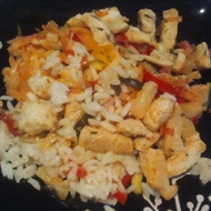 Sauté the vegetables and pineapple in vegetable oil for 5 minutes and transfer them onto the rice.